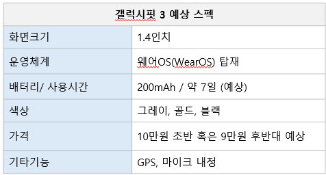 1. 갤럭시핏 3 예상 스펙