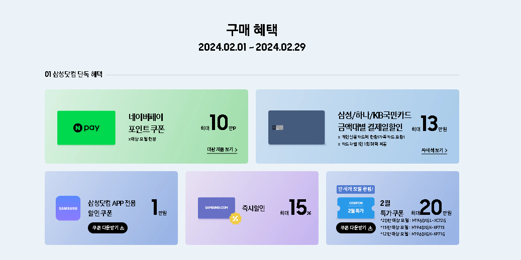 삼성 닷컴의 공식 홈페이지의 할인 혜택을 꼼꼼히 살펴봅니다